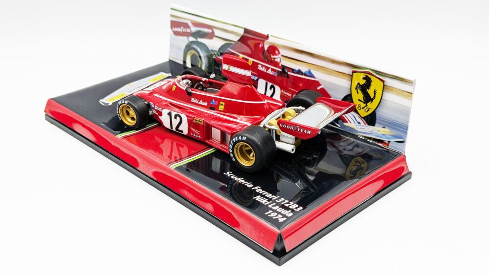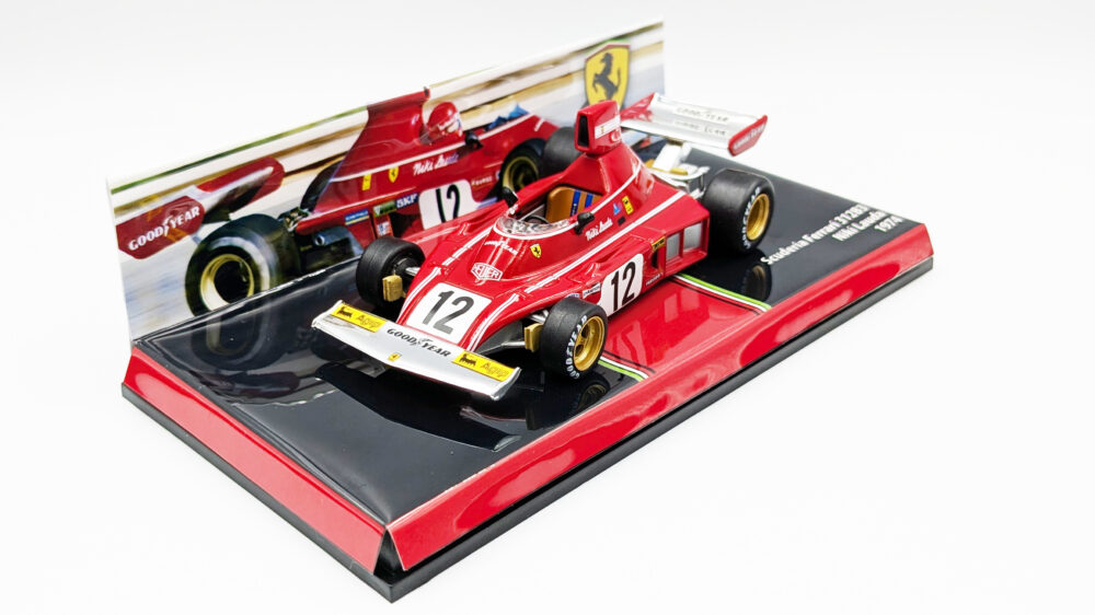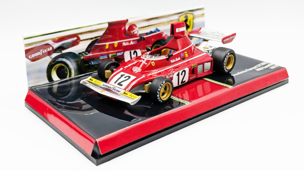 このマシンの弱点だったアンダーステアは名アイデア「横置きギアボックス」により解消、ラウダとシェクターにより3度のタイトルに輝きます。開発面もしっかりしていますね……。