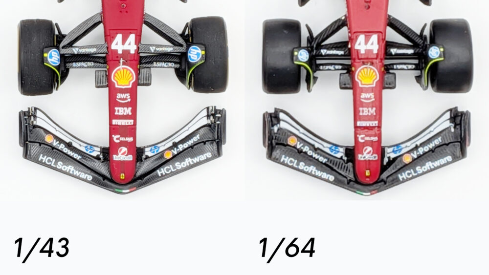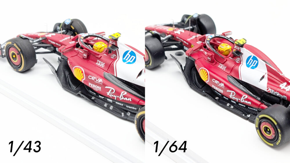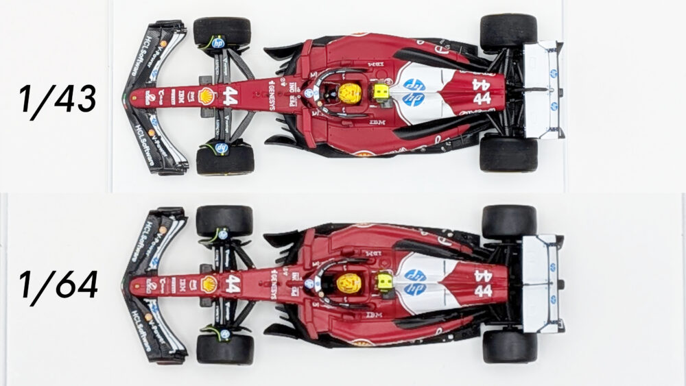 「1/43と1/64の違いなんて一目でわかってしまうだろう」とクイズ形式ではなく比較形式で用意しましたが、これはクイズ形式でも面白かったかもしれないですね。